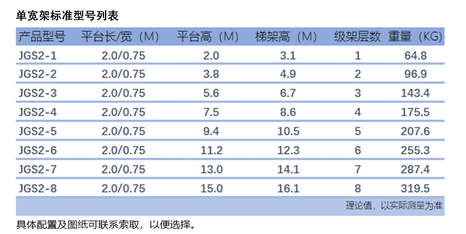 梯架長(zhǎng)度:2.0/2.5/3.0m