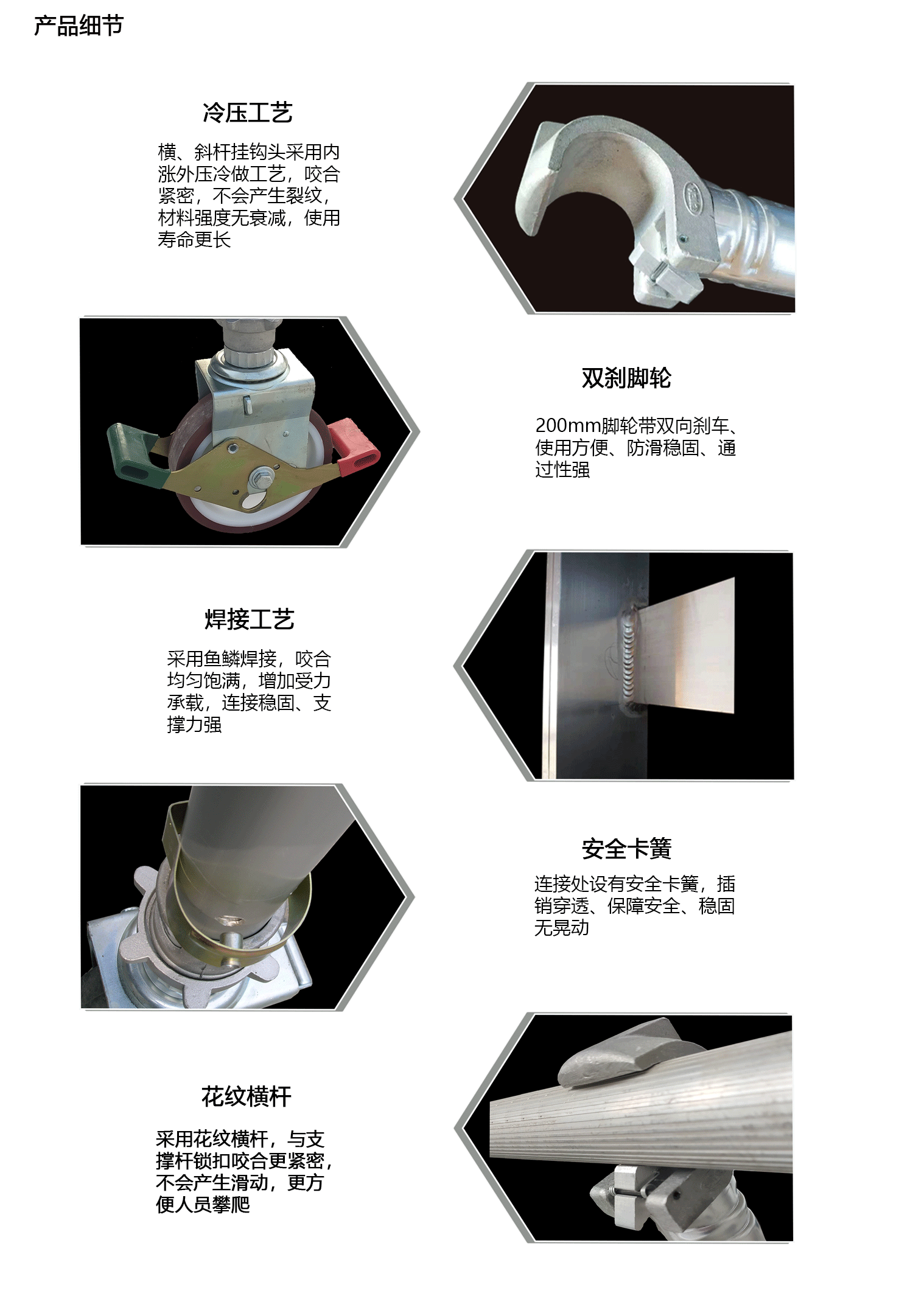 主要特點(diǎn):主材采用6系列特選鋁合金,重量輕、強(qiáng)度高、免維護(hù)、快捷方便;單體工作高度可達(dá)18米。這種移動(dòng)腳手